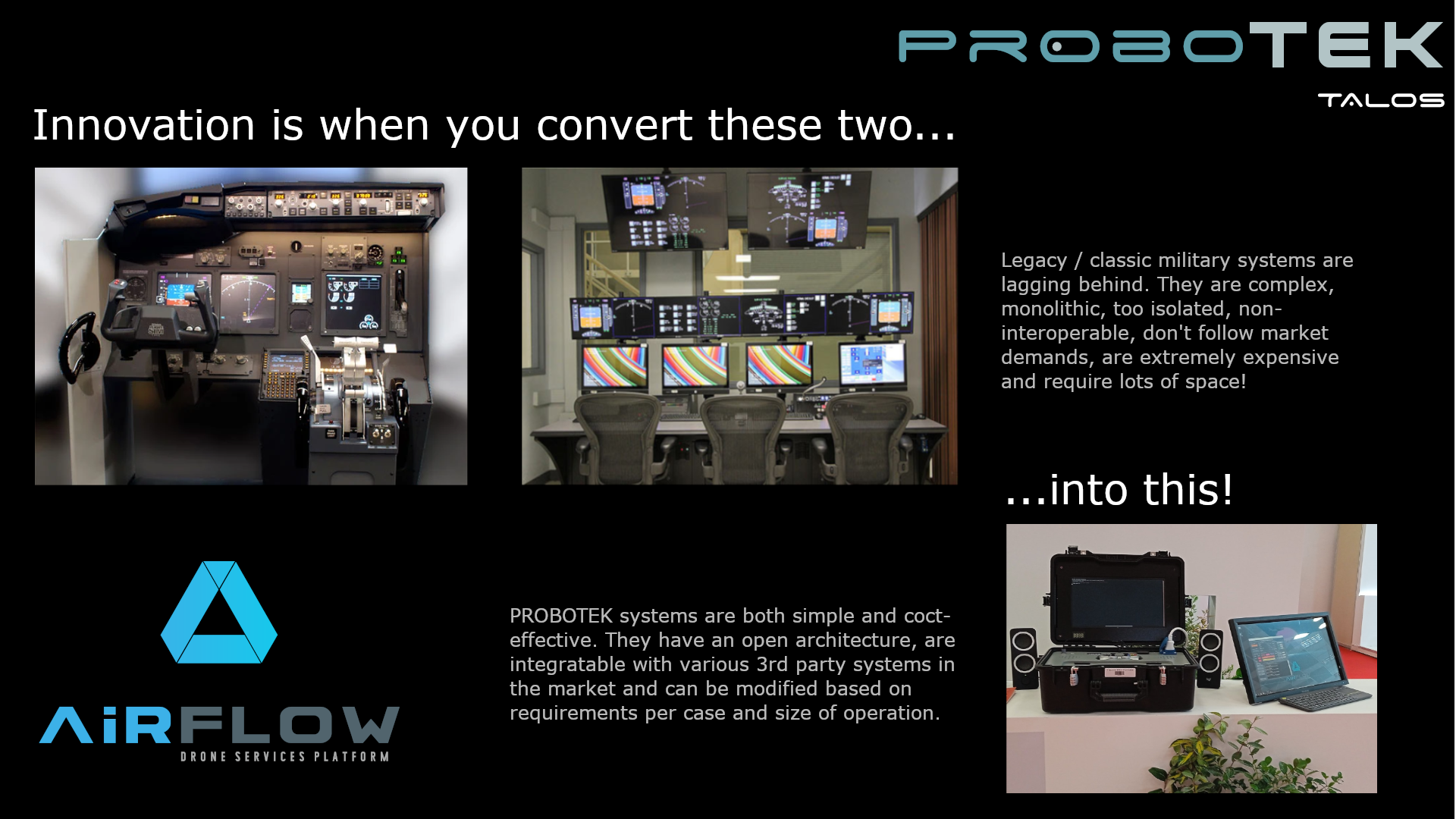 TALOS is a complete mobile suitcase for drone operations on the field. It is both a mobile base and a GCS.